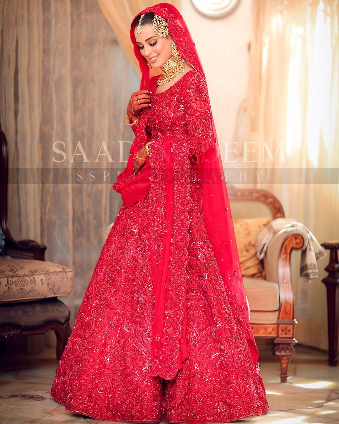 Yasir and Iqra wore traditional attires to look even more special on the big day. Iqra looks stunningly gorgeous in a pure red heavily embroidered dress designed by famous Nomi Ansari.