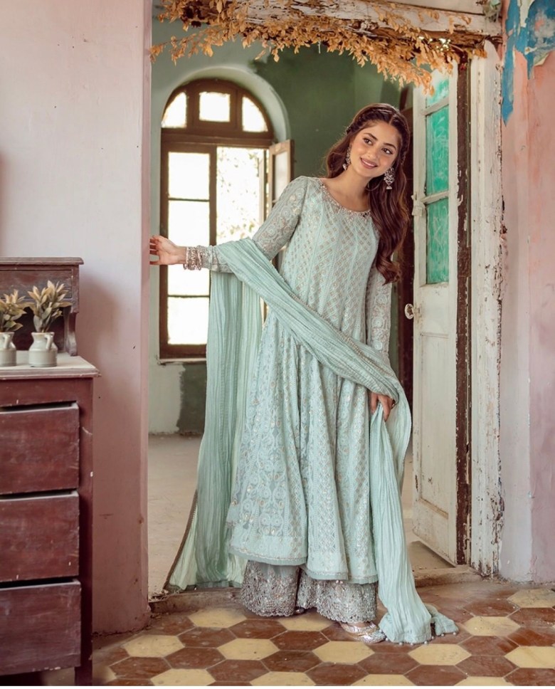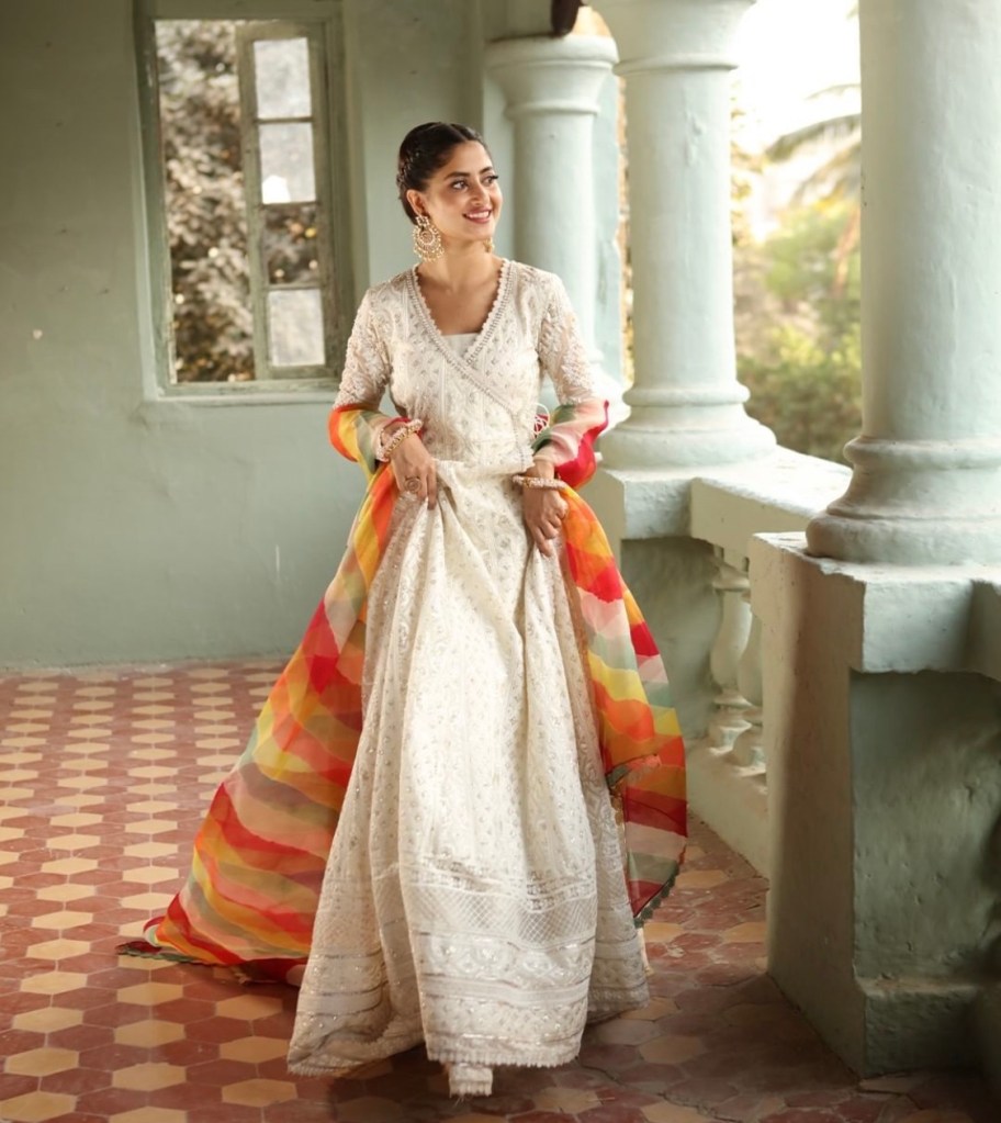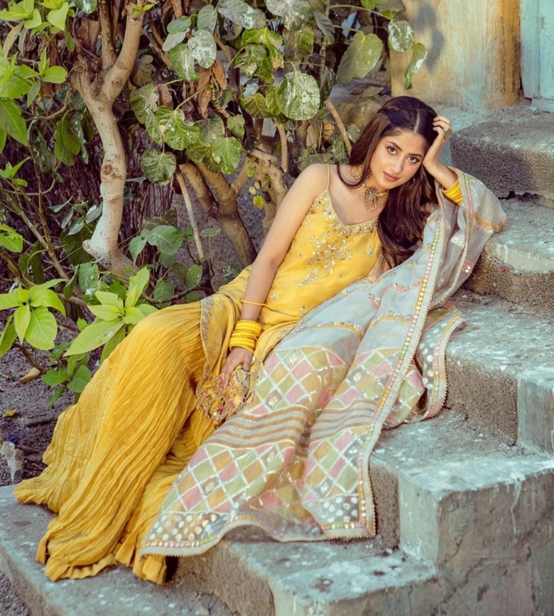 Pakistani young actress Sajal Aly got married last year since then she was away from the screen however, she remained active on her social media account, recently we spotted Sajal’s latest photoshoot for a Pakistani famous clothing brand Faiza Saqlain. Sajal looks unquestionably gorgeous. Here are some pictures of her recent clicks.