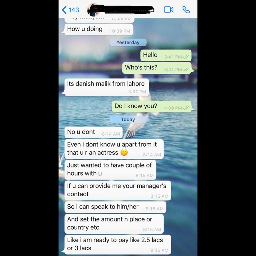 A few months back mariyam narrated an incident where a man had blatantly asked her some hideous questions. In which reaction she said “Actress hu, prostitute nahi. (I’m an actress, not a prostitute) I’m sick of these proposals and I’ve tried whatever I could to make them stop but this is what I’m going to do now. It affects my mental health, it disturbs me that some people think this is what my business is. NO! I’m NOT FOR SALE!,” Also, she shared a screenshot of the conversation between her and the said man. Many other actresses like Armeena Rana and other celebrities’ also show support for her and said, we also faced the same situations