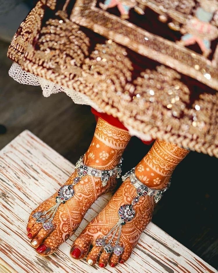 When it’s come to the wedding Mehndi is the most important part, not only hand but also feet. And traditional bridal look is incomplete with Mehndi on feet. Mehndi is traditional significant and the glam factor that you add to your bridal look. We chot some Mehndi designs based on current trend. While checking these designs don’t forget to bookmark them. Let’s check the bridal Mehndi designs for feet.