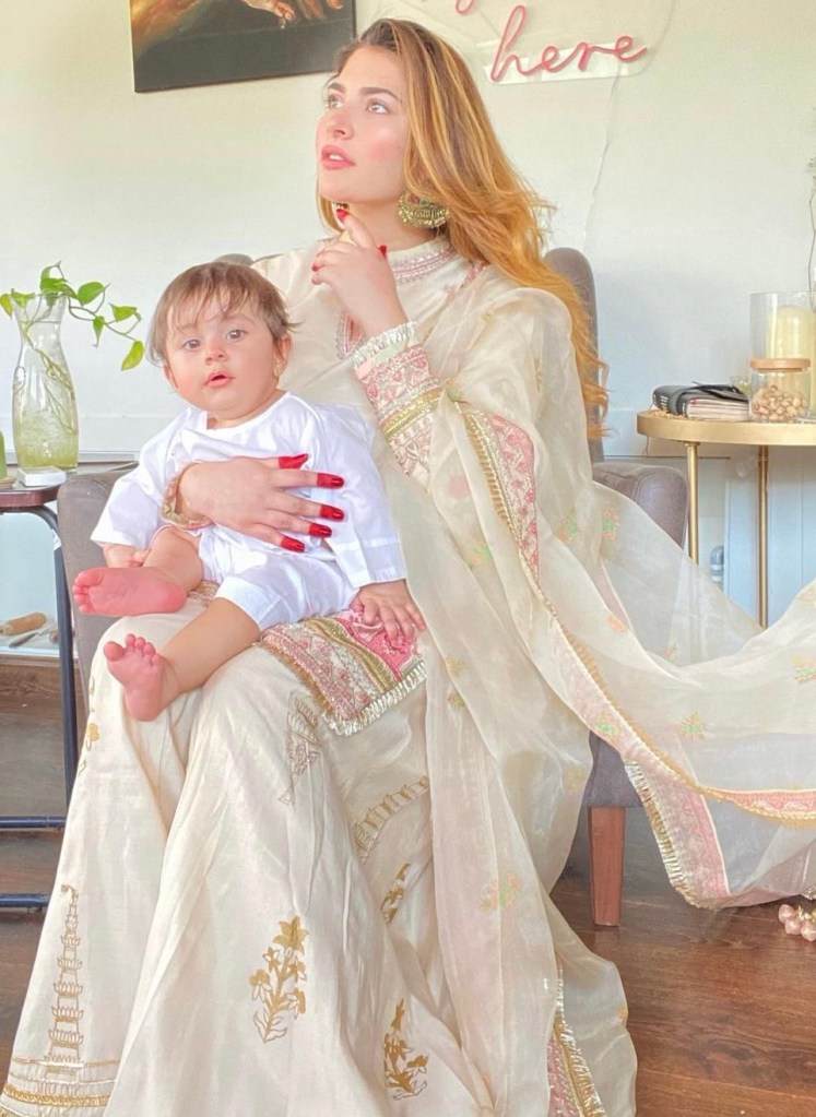 Naimal also tells her fans that Hamza Ali Abbasi even takes care of Mustafa all by him self, when she needs some time to work on her art.