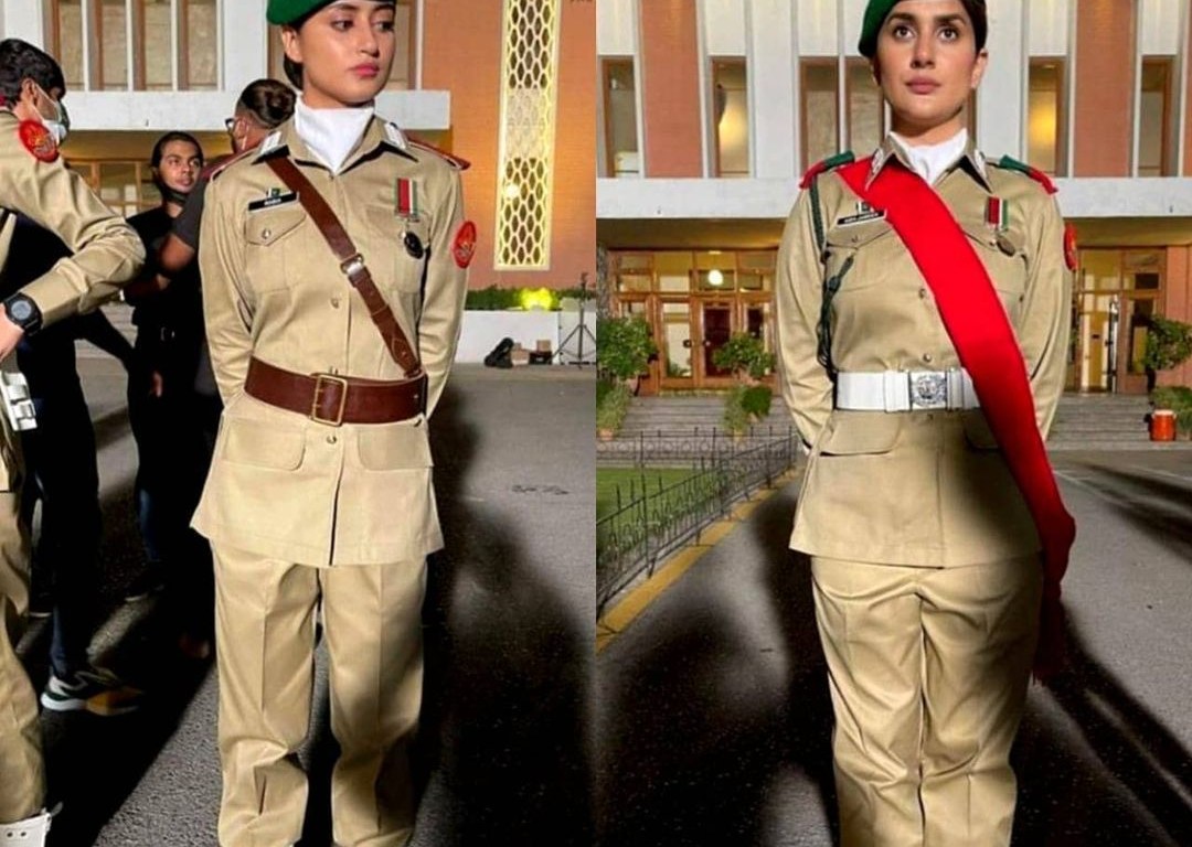 Pictures of Kubra and Sajal dressed up as army cadets for the upcoming show were unveiled online on Sunday, and left the audience more excited. This serial, touted as a female-centric story of five female army cadets, is penned by Umera Ahmed.