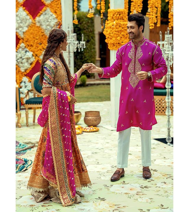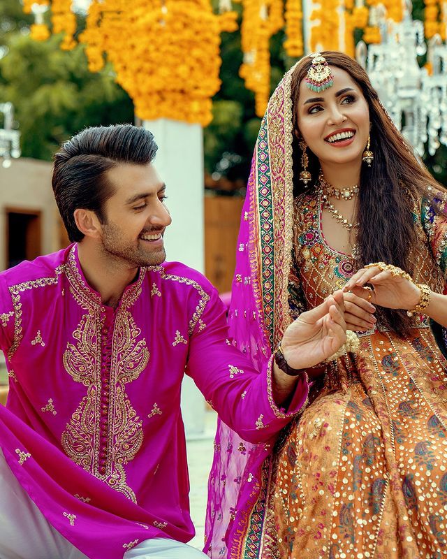 Nimra Khan has combined up with style model Aimal khan in the Wedding Lobby “Ghar Ki Shadi” for design planner Annus Abrar. Both the stars are looking lovable as a couple.