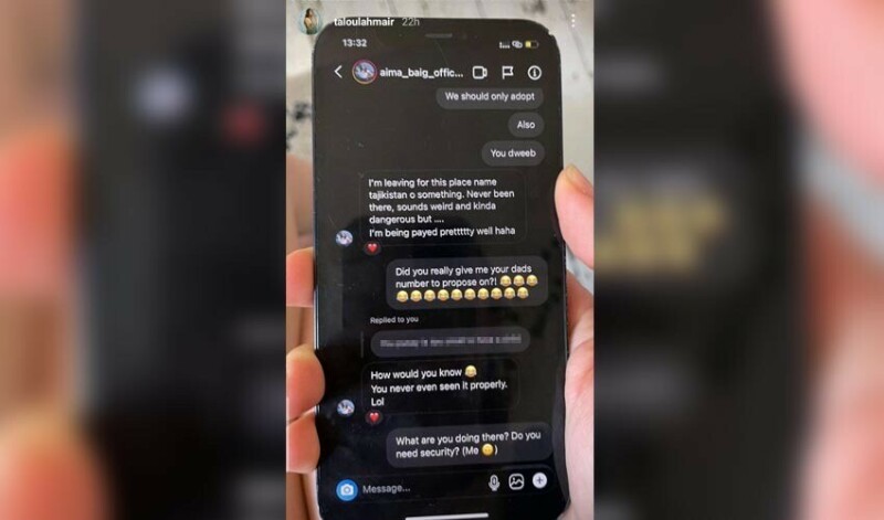 Taloulah Mair shared a screenshot of a chat allegedly between Qes Ahmed and Aima Baig.