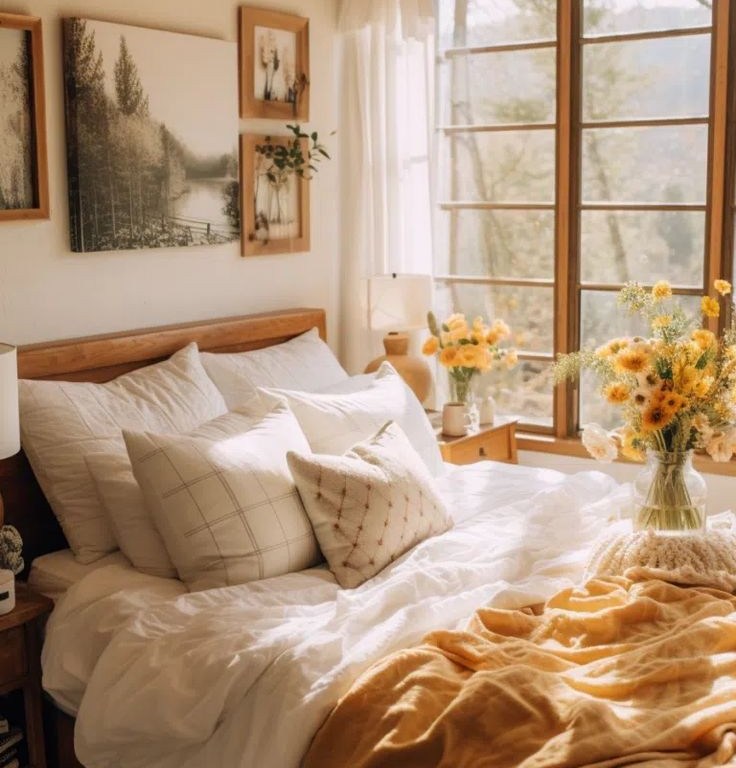 Tips: Add lighter fabrics, flowers, plants, and summer candles to give your bedroom a refreshing and clean air.