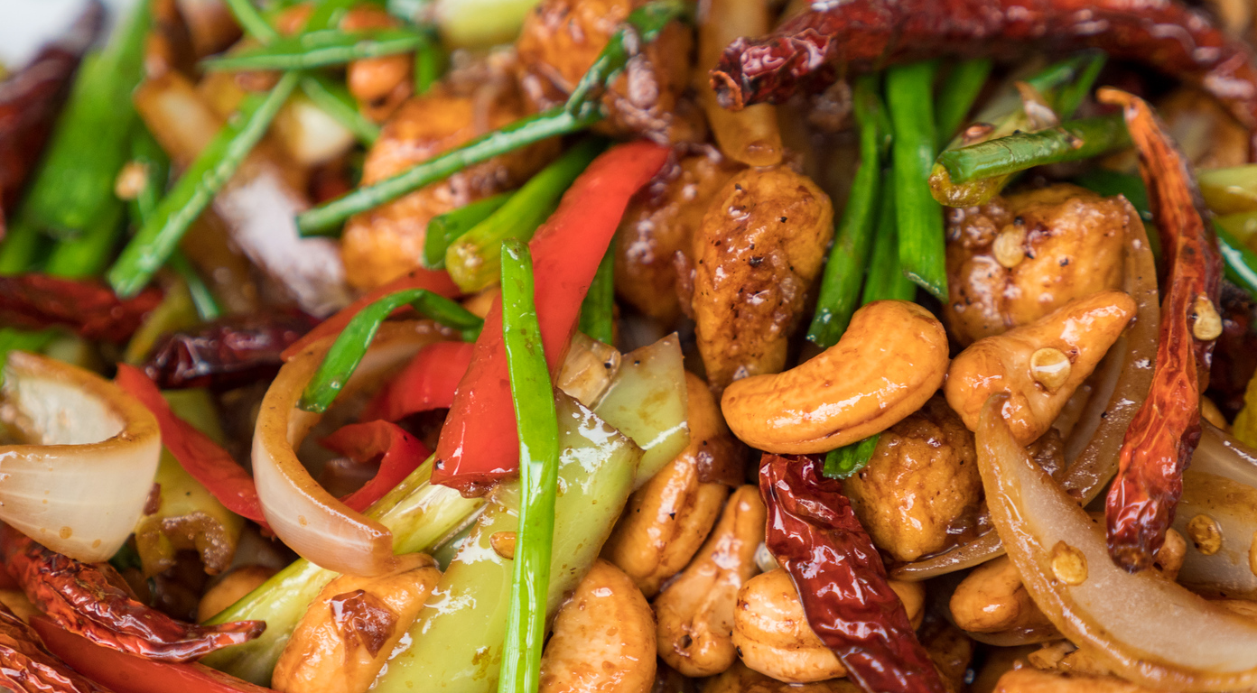 - Add more soy sauce, Oyster sauce, tomato ketchup, and cashews/ peanuts stir until well mixed. Add green onions. Serve warm with steamed rice.