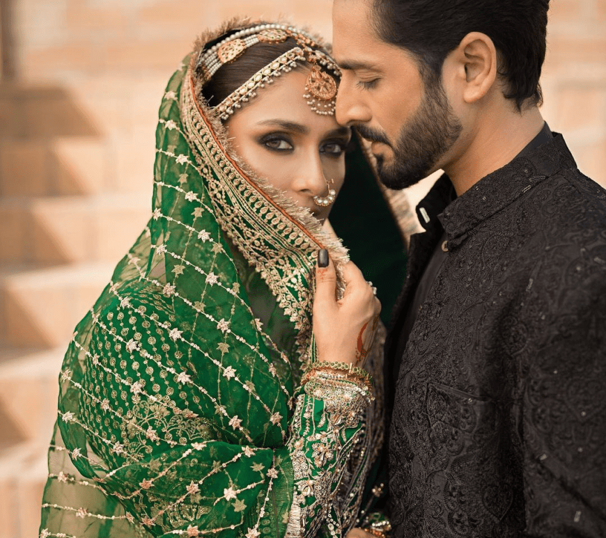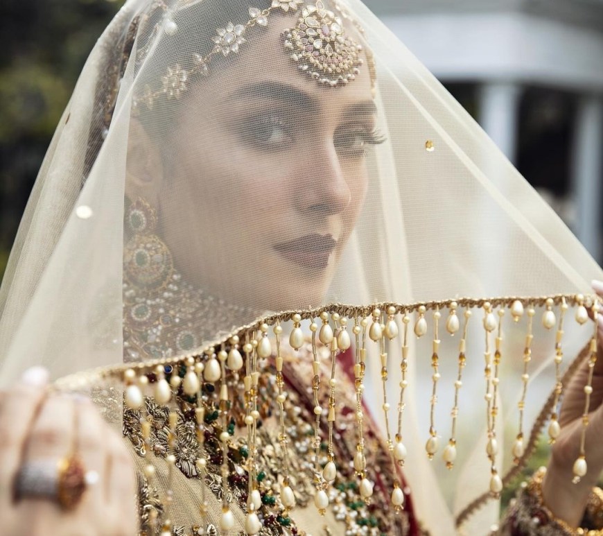 Sajjal Aly’s bridal Photoshoot in pink tissue peshwas